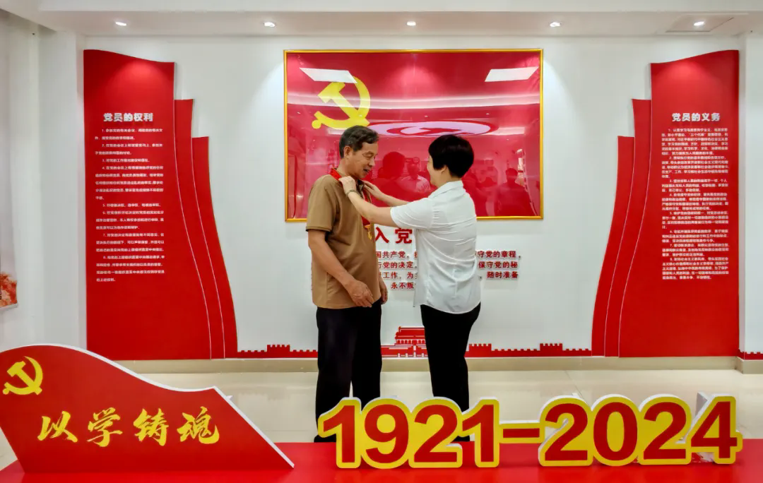 五十载峥嵘岁月,五十载初心如磐。为弘扬红色基因,汲取奋进力量,传承党的优良传统和作风,揭阳产业园举办了“光荣在党50年”纪念章颁发仪式,由组织人事局局长林瑜珊为党龄达到50年的老党员颁发“光荣在党50年”纪念章,并向老党员致以崇高的敬意和衷心的祝福,老党员在大家的见证下,戴上了沉甸甸的纪念章。庄重简朴的仪式,表达了对前辈始终坚守初心使命的敬仰之情,也让年轻党员深受教育鼓舞。