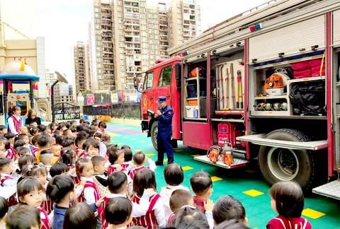 活动中,消防员结合幼儿年龄小、好奇心强、安全意识薄弱、自防自救能力较差等特点,详细地为孩子们讲解如何防止火灾发生、发生火灾时应该怎么办、如何报警等消防安全知识,同时进行消防安全知识问答,提升孩子们消防安全自救能力。随后,消防员为师生们展示了救援时需要用到的器材设备,为他们讲解每一种器材的用途,并详细讲解灭火器的正确使用方法。